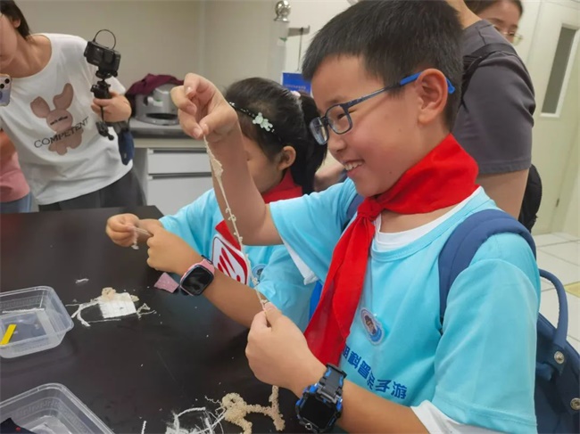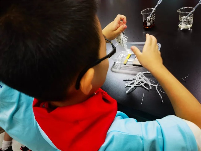 小朋友們親手拆除試了試,發現梭織面料比較難拆,更結實,針織面料則比較好拆,找出線頭一拉就都拆掉了。