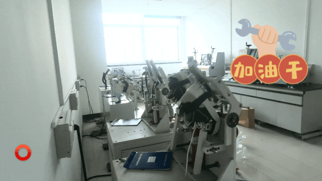 原來這是在進行運動鞋的質量檢測,這幾臺機器在模擬人們穿鞋行走和彎折的情形,看起來十分有趣呢!