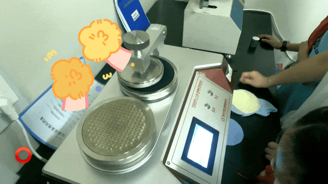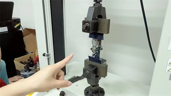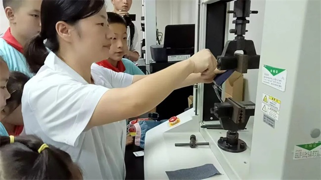 檢驗員小姐姐將一塊布料卡在上面,它就會大力拉扯,直到布料破裂!